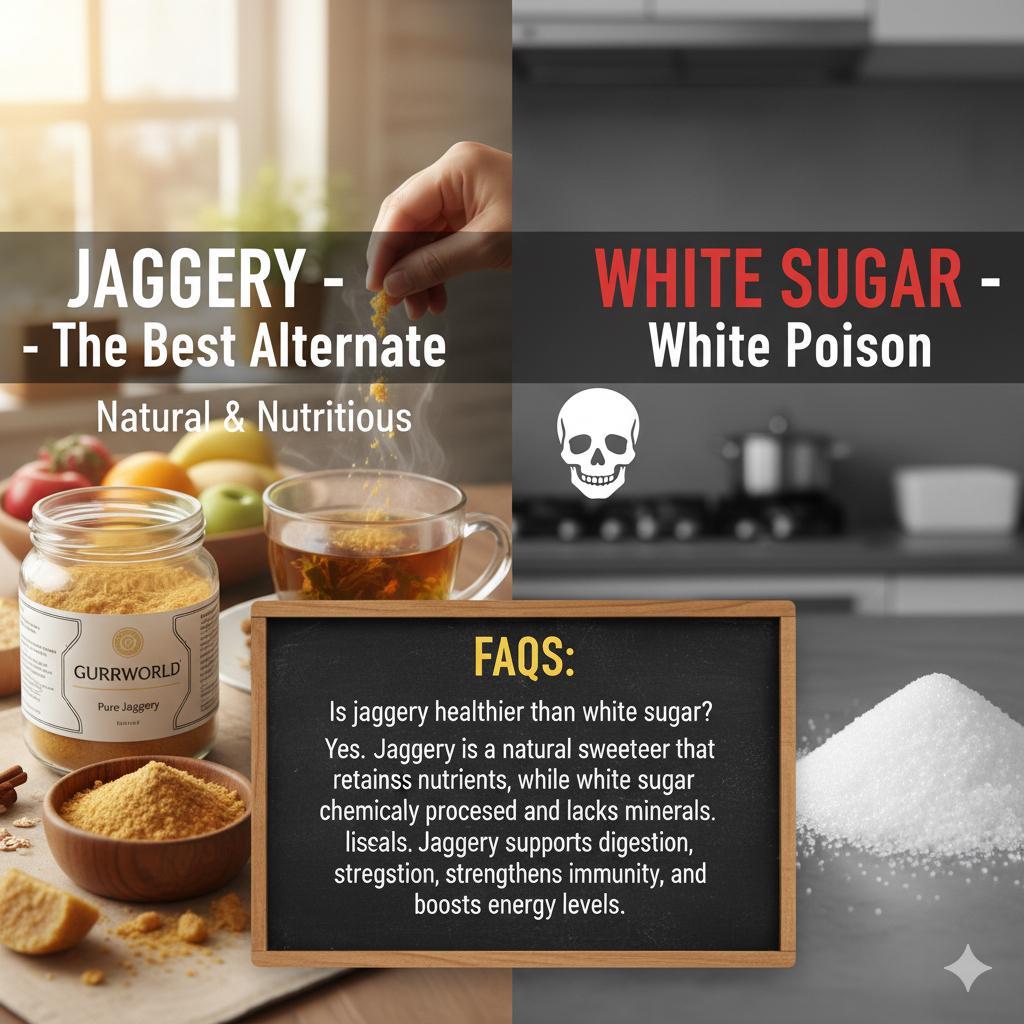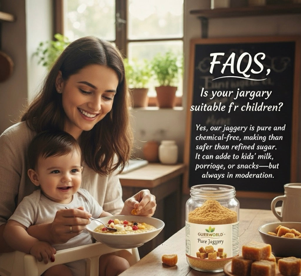 Say goodbye to refined sugar and step into a healthier lifestyle with GurrWorld. Our jaggery is 100% pure, natural, and chemical free, rich in minerals and energy to keep you strong. What makes it truly special is its origin grown on our own fertile lands nourished by the crystal waters of a mountain river, producing sugarcane of unmatched quality. Handcrafted using traditional methods, GurrWorld jaggery brings you natural sweetness, pure goodness, and a healthier alternative for your tea, coffee, and everyday life.