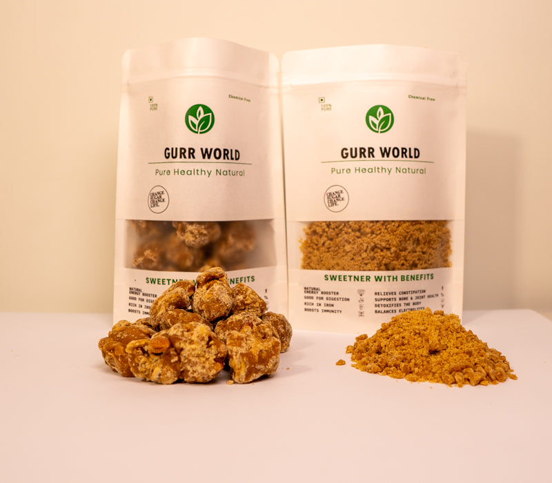 Say goodbye to refined sugar and step into a healthier lifestyle with GurrWorld. Our jaggery is 100% pure, natural, and chemical free, rich in minerals and energy to keep you strong. What makes it truly special is its origin grown on our own fertile lands nourished by the crystal waters of a mountain river, producing sugarcane of unmatched quality. Handcrafted using traditional methods, GurrWorld jaggery brings you natural sweetness, pure goodness, and a healthier alternative for your tea, coffee, and everyday life.